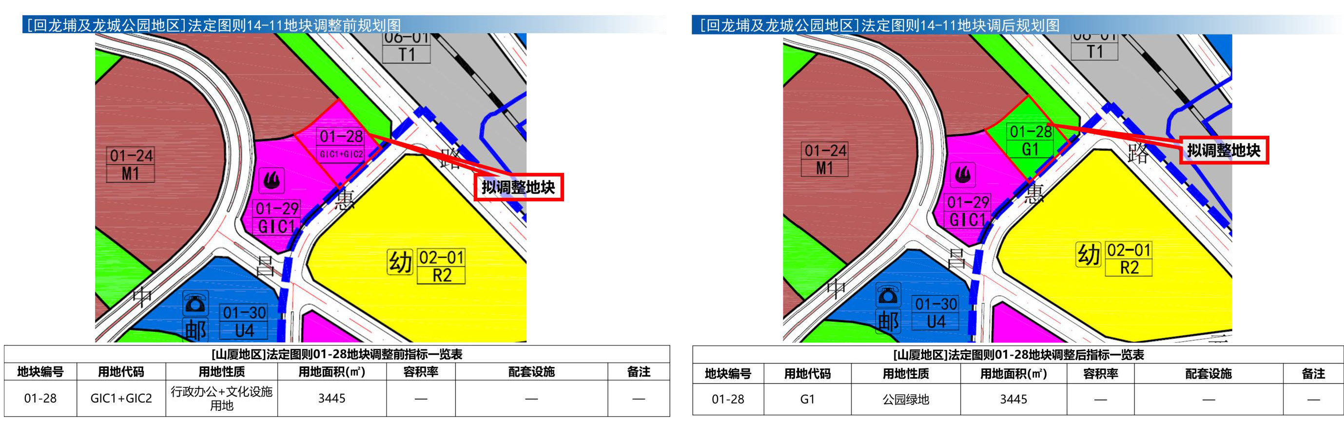 深圳市规划和自然资源局龙岗管理局关于[回龙埔及龙城公园地区]法定图则14-11地块、[坪地中心地区]法定图则04-11地块、[山厦地区]法定图则01-28地块规划个案调整的公示