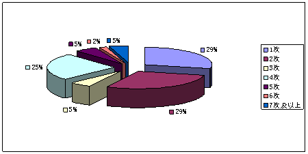 自行车的出行次数可以反映自行车使用频率,由图4-3可以看出,被调查者每天的出行次数为1~4次的居多,大概占总比例的88%,自行车的使用频率教高。这与片区自行车出行以健身、休闲和上班为主的出行目的相符合。