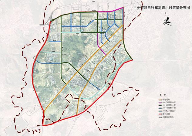图 4-8 主要道路自行车高峰小时交通流量分布图