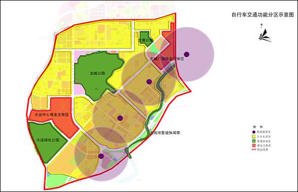 结合研究区域用地功能及自行车交通功能,提出本次研究区域自行车交通功能分区。具体见图6-1。