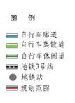 公交和自行车交通的接驳将是研究区域自行车交通的发展方向之一,本次改善规划将从自行车通道的建设和自行车停车设施规划两方面考虑,将自行车交通与大运量公交站点的接驳纳入其中。