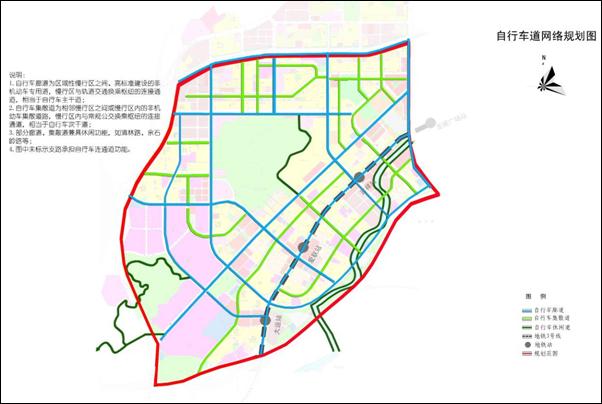 自行车车道网络应保证与研究范围内及周边绿道、景观休闲区域有良好的衔接。