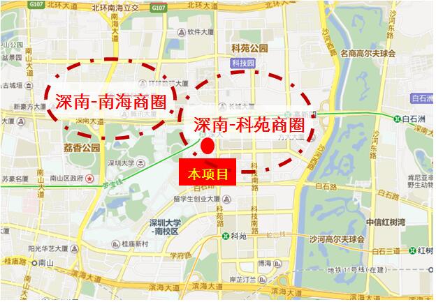 - 项目位于深圳市南山区科技园南区,紧邻地铁一号线深大站,西侧与深大校园隔路相望,总用地面积5654.8㎡。建筑由两栋148.5m和134.5m的双子塔楼及38.5m高的裙楼组成,总建筑面积94034.16㎡,是集地下停车、底层商业、配套服务、新型研发用房及商务公寓于一体的研发型建筑综合体。