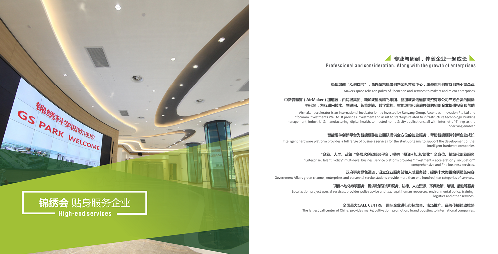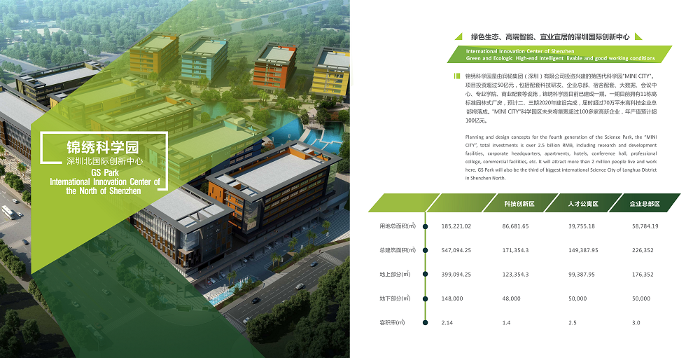 - 锦绣科学园是由润杨集团(深圳)有限公 司投资兴建的大型高科技园区。占地 18.5 万㎡,共分三期建设,其中包括科技研发、企业 总部、人才公寓、商业配套,总建筑面积约 54.7 万㎡,总投资额超过 50 亿元,主要产业方 向为智能制造、生物医疗、人工智能、新材料以及集成电路。自开园以来,园区已引进了 阿里云、腾讯云、德国莱茵 TUV、东视、傲科、摩方、力子光电、家鸿口腔、杰普特、宣泽、 松禾、华荣、神目、凯立德、谱元、三方圆、科晶智达、芬能、洁康等高新技企业 30 余家。 其中国高、市高企业 12 家;上市企业 3 家;区中小微创新百强企业 5 家。