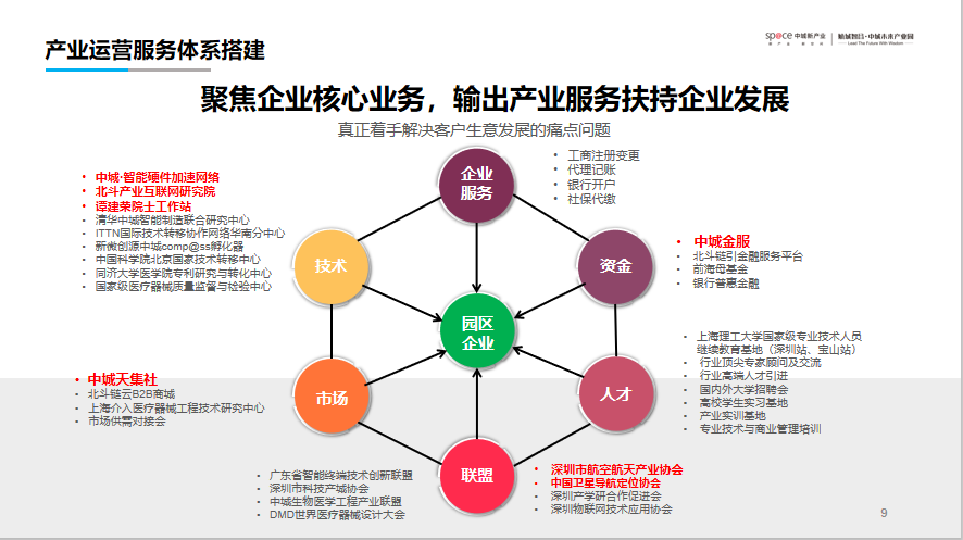产业服务:专业政策补贴申请、人才招聘、投融资对接、天集社(市场供需对接)等;