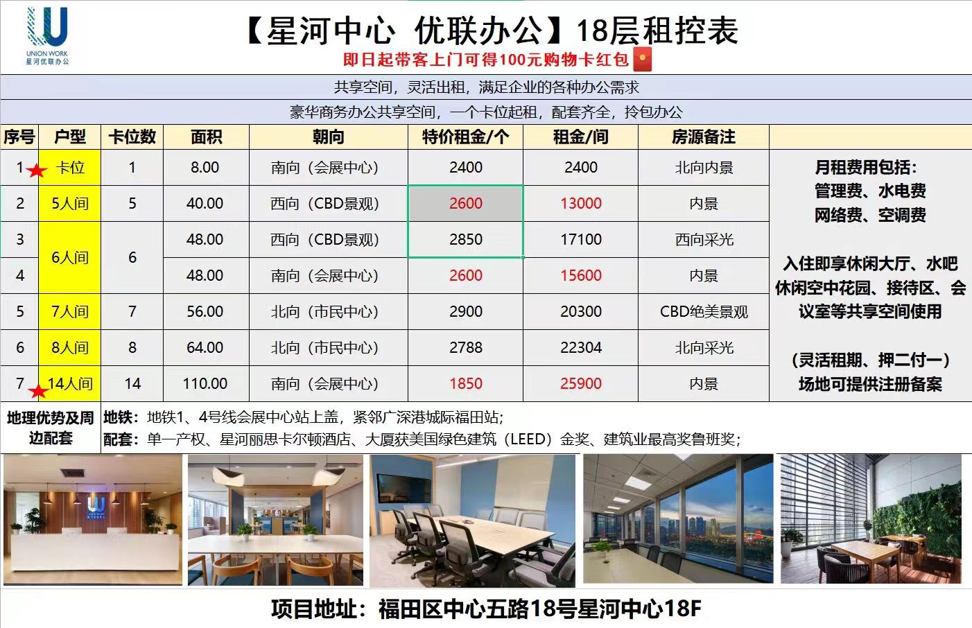 一、项目情况:星河中心坐落于深圳市福田区福华三路116号,位于深圳城市行政、商业、金融中心区和1、4号线双地铁交叉点处。坐拥丽思卡尔顿酒店、南临会展中心、北临大中华国际商城,地理交通位置十分优越。总建筑面积为30000余平。星河中心,集商务、购物、酒店于一体,构建三位一体的多功能专业配套体系,服务商务客群,以全新视角定义深圳核心商务领地,领创深圳中心系商务综合体。