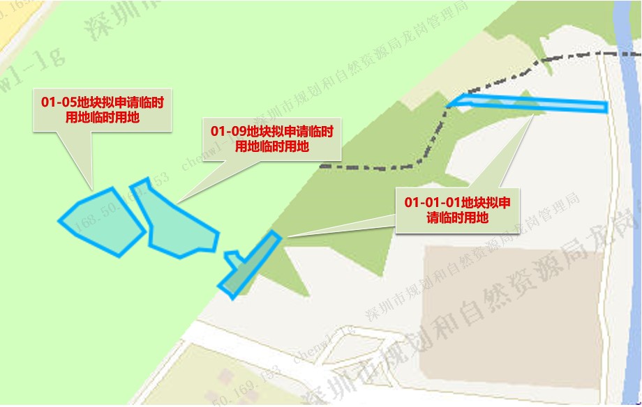 平湖金融基地辅城坳利益统筹一期一批项目01-01-01地块拟申请临时用地占用基本生态控制线205.64平方米,拟申请占用2年;01-05地块拟申请临时用地全部位于深圳市基本生态控制线内,占用面积为2999.82平方米,拟申请占用2年;01-09地块拟申请临时用地全部位于深圳市基本生态控制线内,占用面积为2906.45平方米,拟申请占用2年,具体详见附图。