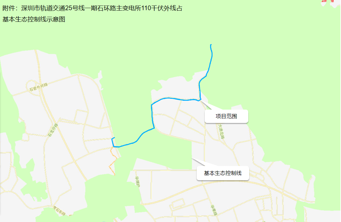 附件:深圳市轨道交通25号线一期石环路主变电所110千伏外线占用基本生态控制线示意图