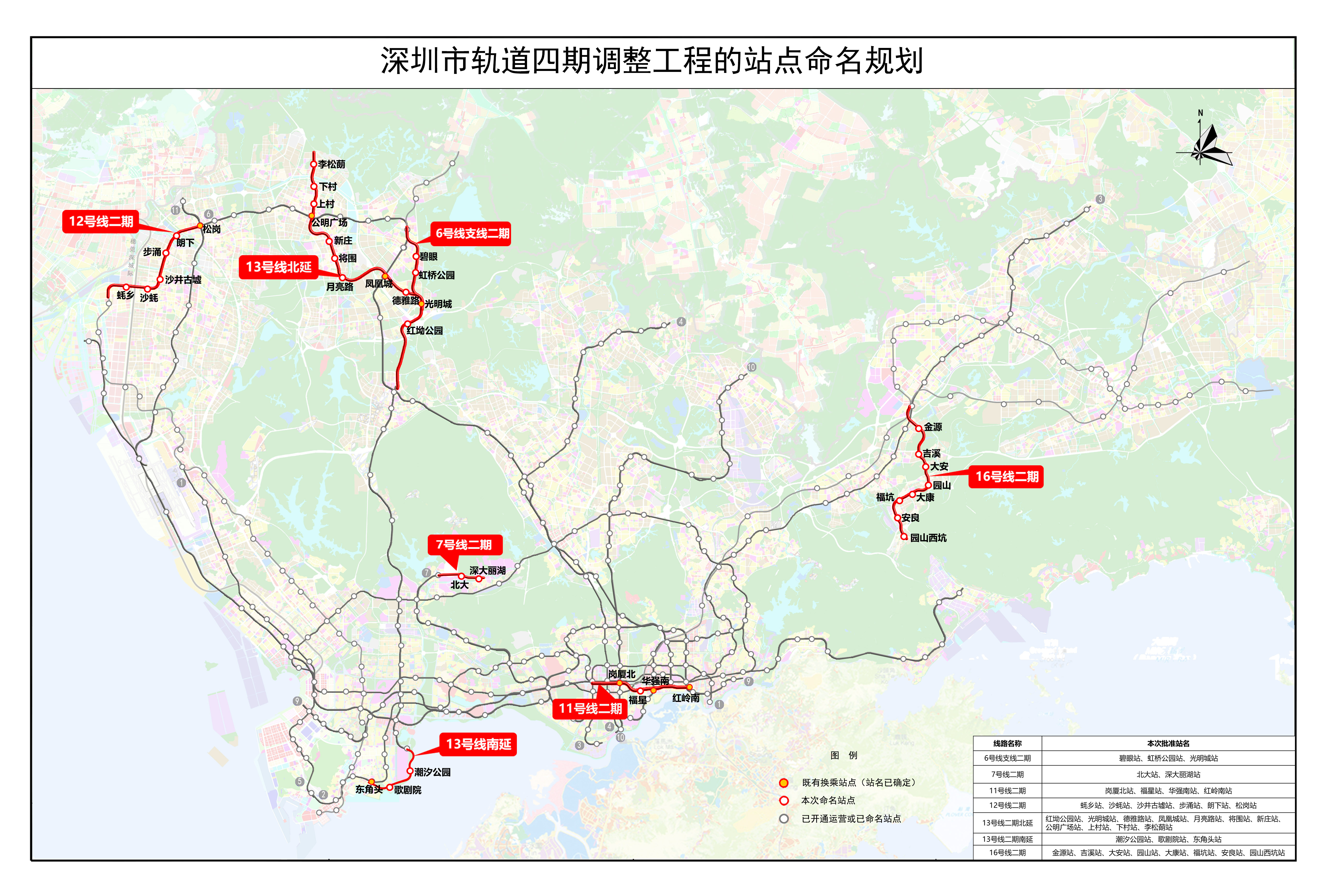 按照全市轨道建设工作安排,深圳市规划和自然资源局根据《深圳市地名管理办法》,组织编制了《深圳市轨道四期调整工程的站点命名规划》,经市政府批准,现予以公告。