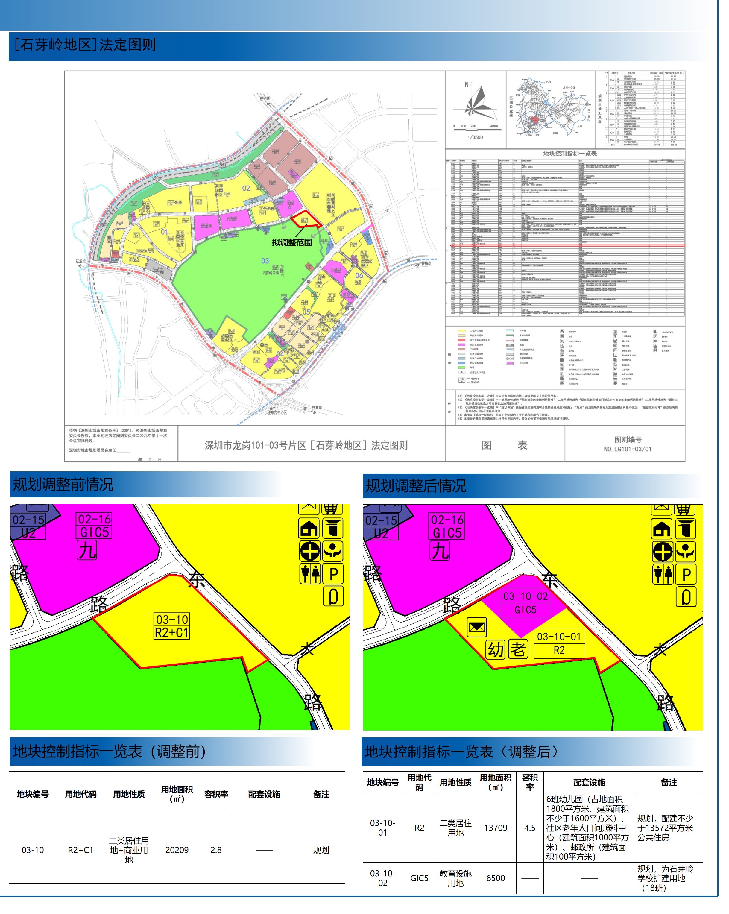 深圳市规划和自然资源局龙岗管理局关于龙岗区[石芽岭地区]法定图则03-10地块规划调整的公示